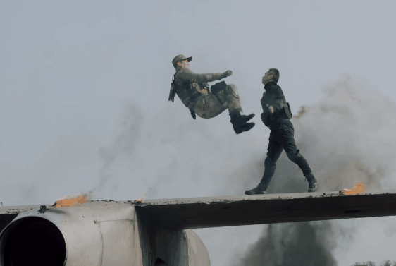 之后松少和队友又与反派在飞机机翼上打了一段广播体操。